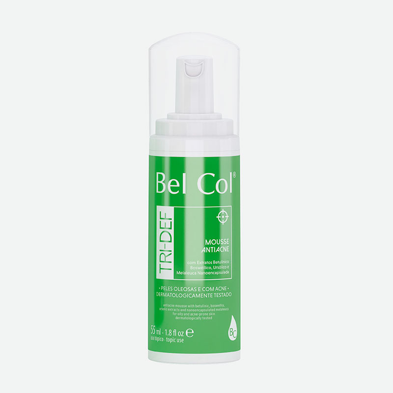 Por último, o Tri-Def, que é uma mousse de tratamento intenso para peles com acne, cuidadosamente elaborada com três extratos botânicos riquíssimos nos ácidos: Boswéllico, Betulínico e Ursólico que são ácidos multifuncionais na recuperação epitelial. Com efeitos adstringente, analgésico, anti-inflamatório, antisséptico, antioxidante, calmante, cicatrizante, sedativo, entre outros. Estes ácidos botânicos estão presentes na mousse Tri-Def para reforçar sua capacidade de regular a oleosidade da pele, prevenir a obstrução dos poros, bem como a formação de novas lesões. Tem alto poder secativo.