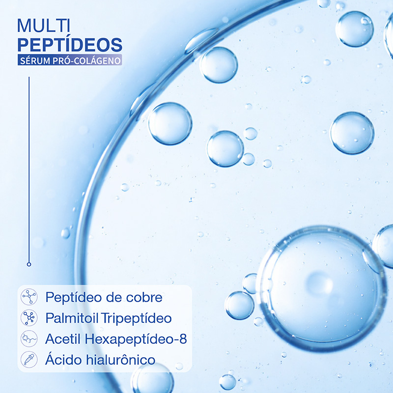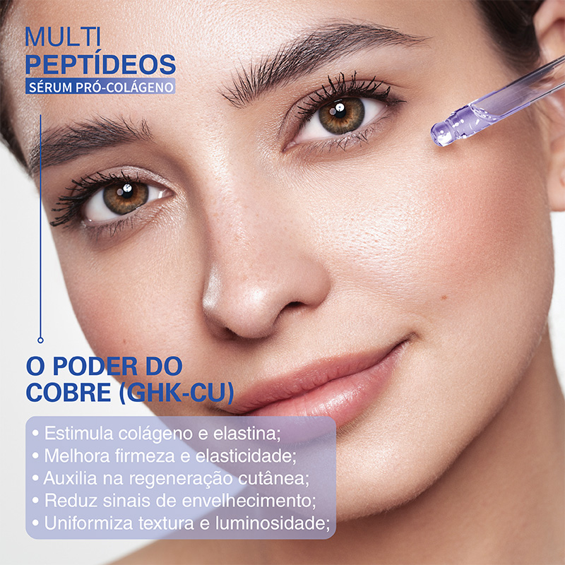 Sua fórmula combina um complexo avançado com mais de 10 peptídeos biomiméticos, incluindo o Peptídeo de Cobre, associados ao ácido hialurônico, promovendo a suplementação dos componentes essenciais da pele e contribuindo para a preservação do “banco de colágeno”.