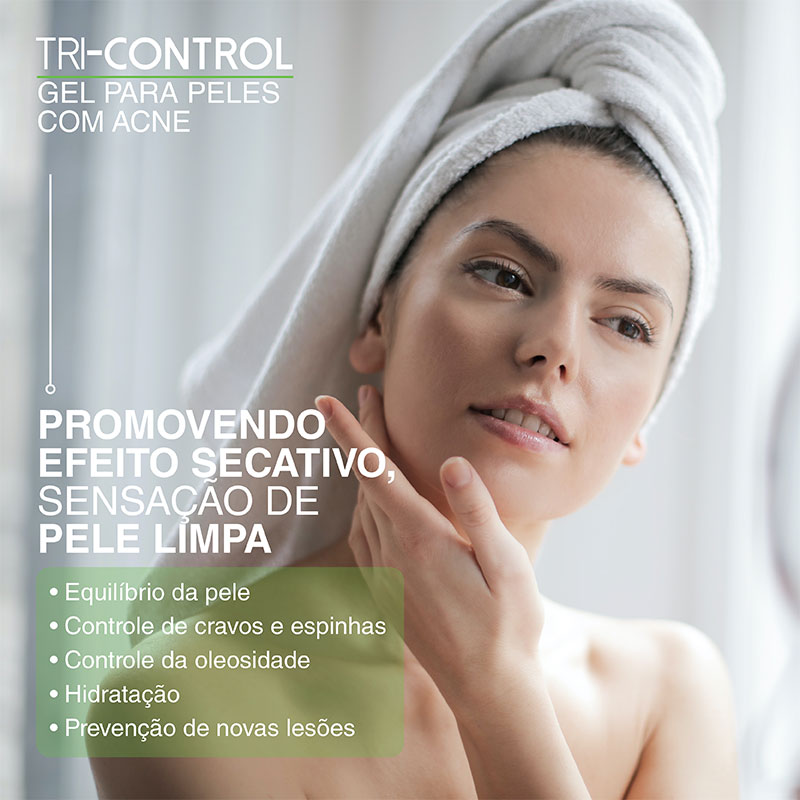 Tri Control é um gel de rápida absorção que auxilia na prevenção de imperfeições, promovendo efeito secativo e sensação de pele limpa. Sua ação ajuda a manter a superfície livre de excesso de brilho, com aparência mais uniforme e saudável.